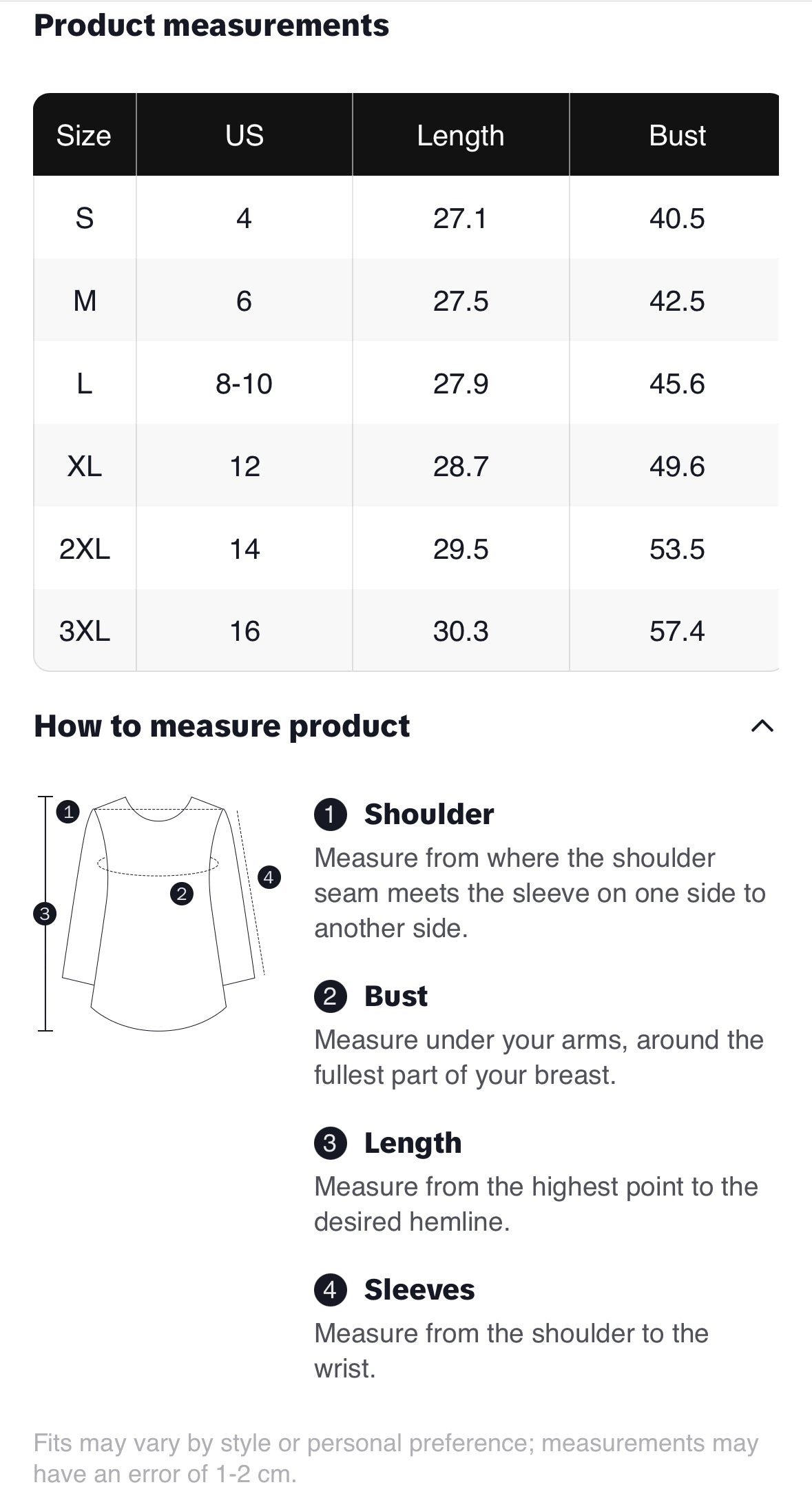 *View measurement chart before checking out.*
